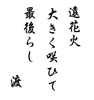(1996.07.末 〜 ) 八月のイメージといえば夏休み、花火、盆踊り等が浮かぶが、私の田舎の盆踊りは 実家の近くの小学校の校庭で行われていた。小さな町が賑わうのは夏祭と盆踊りの 時ぐらいだった。盆踊りの参加者にはアイスクリームが配られたのでそのころを 見計らって踊りの輪に加わった。もともと踊りが好きで、宿直だった担任の男の 先生の後ろについて踊ったことを思い出す。先生も踊りが好きだったのだ。高校生 のころはさすがにてれくさくて踊ることはなかったが海辺の突堤に寝転んで流れ 来る盆踊り唄を聞きながら満天の星をながめていた。満天の星空は大阪の空では 見る事はないがたまに見かける花火にはなぜか遠い田舎の事を思い出す。 そこで一句。 |